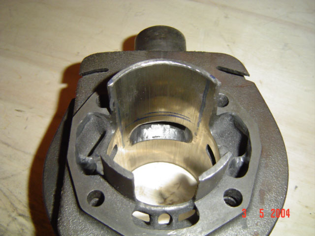 Der Zylinder wird noch überarbeitet. Auslaß auf maximal 70 % der Bohrung verbreitert. Der Zylinderfuß wird noch stark gekürzt, da er sehr im Gasfluß des Membranansaugstutzens liegt.